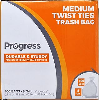 Amazon Com Progress Trash Bags 100 Count 8 Gallon Twist Tie Portable Garbage Bags Can Liners For Kitchen Bedroom Bathroom Office Car Waste Disposal Supplies Health Household